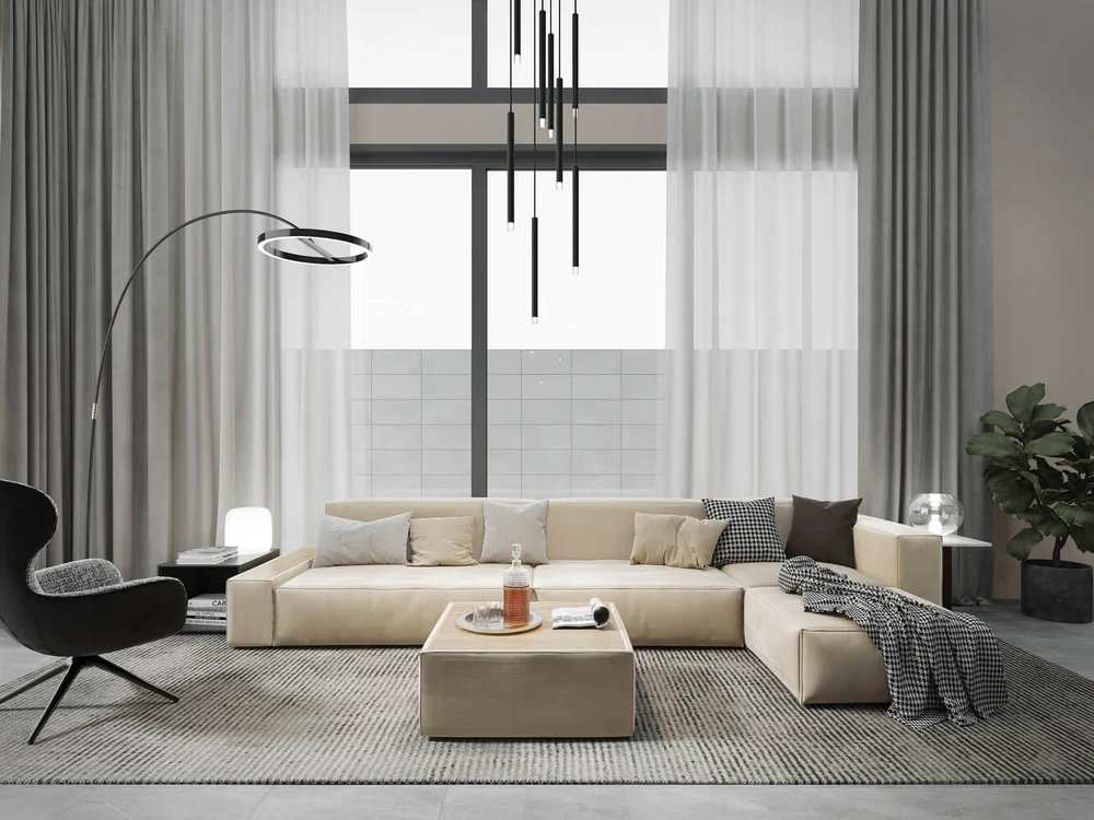 Modern style is a popular style and one of my personal favorites, mainly because of the spacious layout of the furniture and very comfortable because there are no overly complex colors. This style typically uses no more than three colors and often incorporates large floor-to-ceiling windows, resulting in excellent natural light. Modern style often features marble materials, such as on tabletops and floors. If you're choosing a rug for this style, it's best to option for a solid color without patterns. And if you value a clean and efficient living space, modern style is a perfect fit.